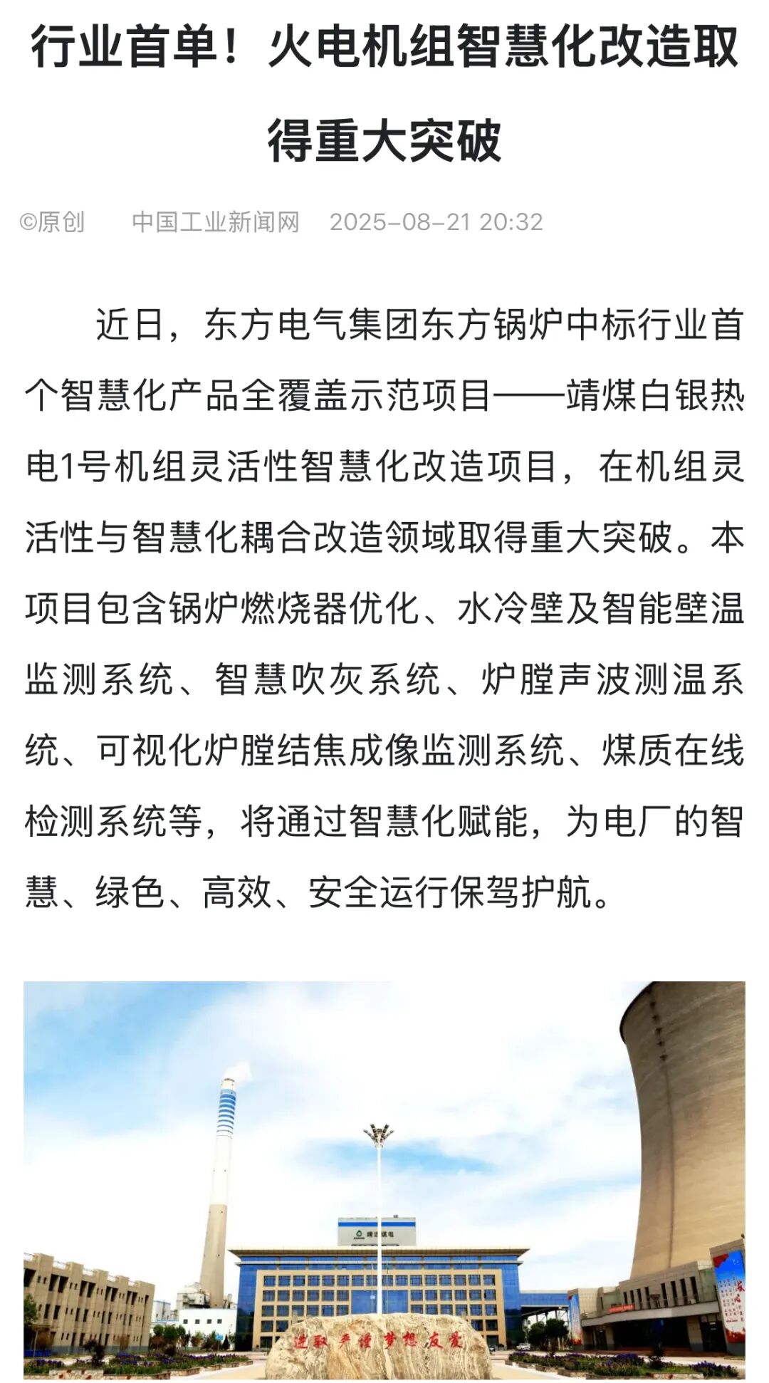 【中国能源产业发展网】行业首单!火电机组智慧化改造取得重大突破