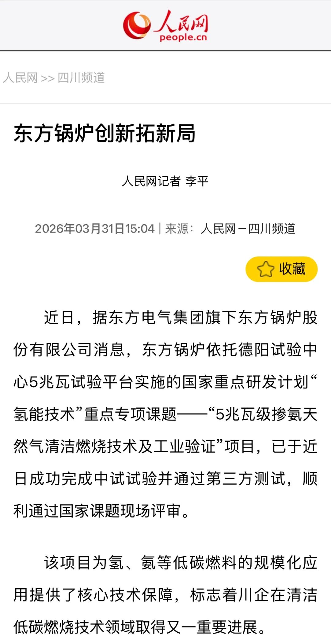 【人民网】东方锅炉创新拓新局